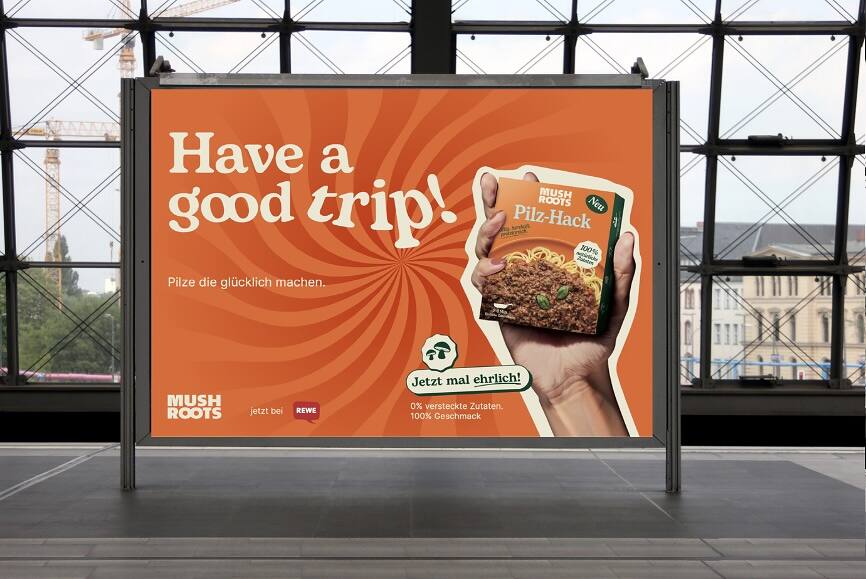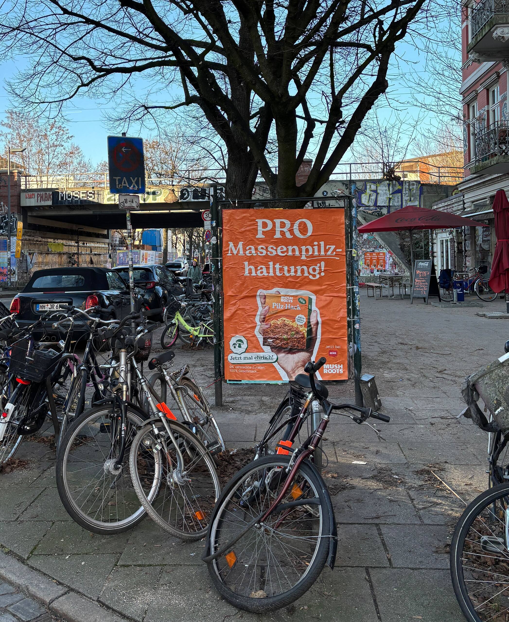 Die Kampagne ist aktuell großflächig im Raum Hamburg sichtbar und stärkt die Präsenz der Marke im öffentlichen Raum. Durch das Zusammenspiel aus Markenentwicklung, digitalem Auftritt und physischer Kommunikation entsteht ein konsistentes Gesamtbild, das MushRoots klar positioniert und nachhaltig verankert.